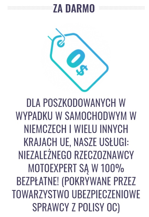 Działająca na terenie całych Niemiec sieć niezależnych rzeczoznawców samochodowych MOTOEXPERT gwarantuje wykonanie zleconej opinii technicznej w sposób niezwykle dokładny, uwzględniając wszystkie powstałe w wyniku wypadku szkody i zlecając naprawę bądź wymianę na nowe części zgodnie ze stanem faktycznym. Otrzymanie dokładnie wykonanej opinii technicznej jest niezwykle korzystne dla Polaków poszkodowanych w wypadkach na terenie Niemiec ponieważ staje się ona podstawą do otrzymania możliwie najwyższego odszkodowania, które pokryje nie tylko wyższy koszt opinii technicznej ale i wystarczy na naprawę uszkodzonego samochodu.